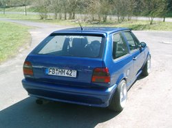 Felgen: | RH Cup vorne 7 x 14 hinten 8 x 14 mit 195/45 R14 rundum |